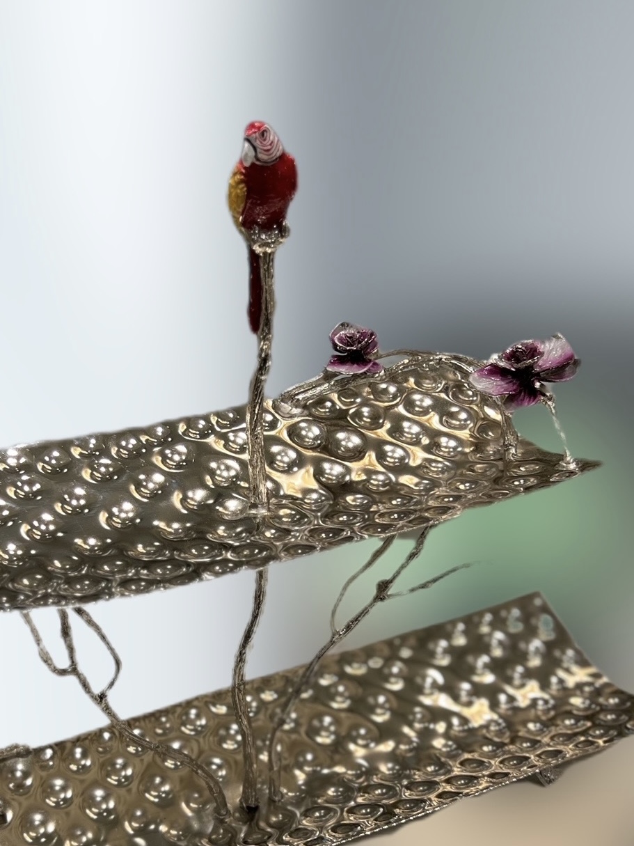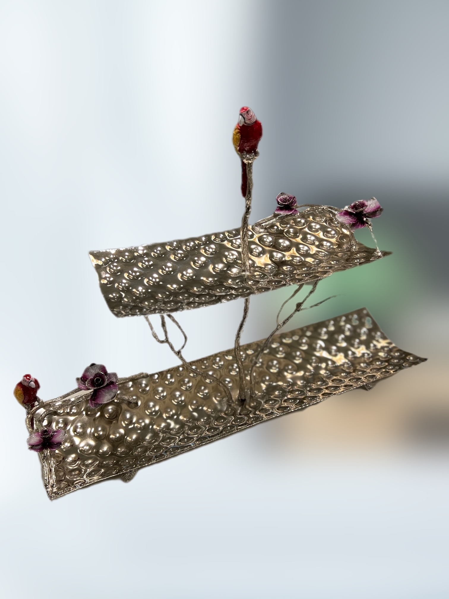 رولتخوری طوطی دوطبقه روکش نقره ، ریخته گری ، میناکاری 11033