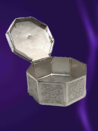 جعبه جواهر نقره قلم تبریز عیار 84 هشت ضلعی 67 گرم