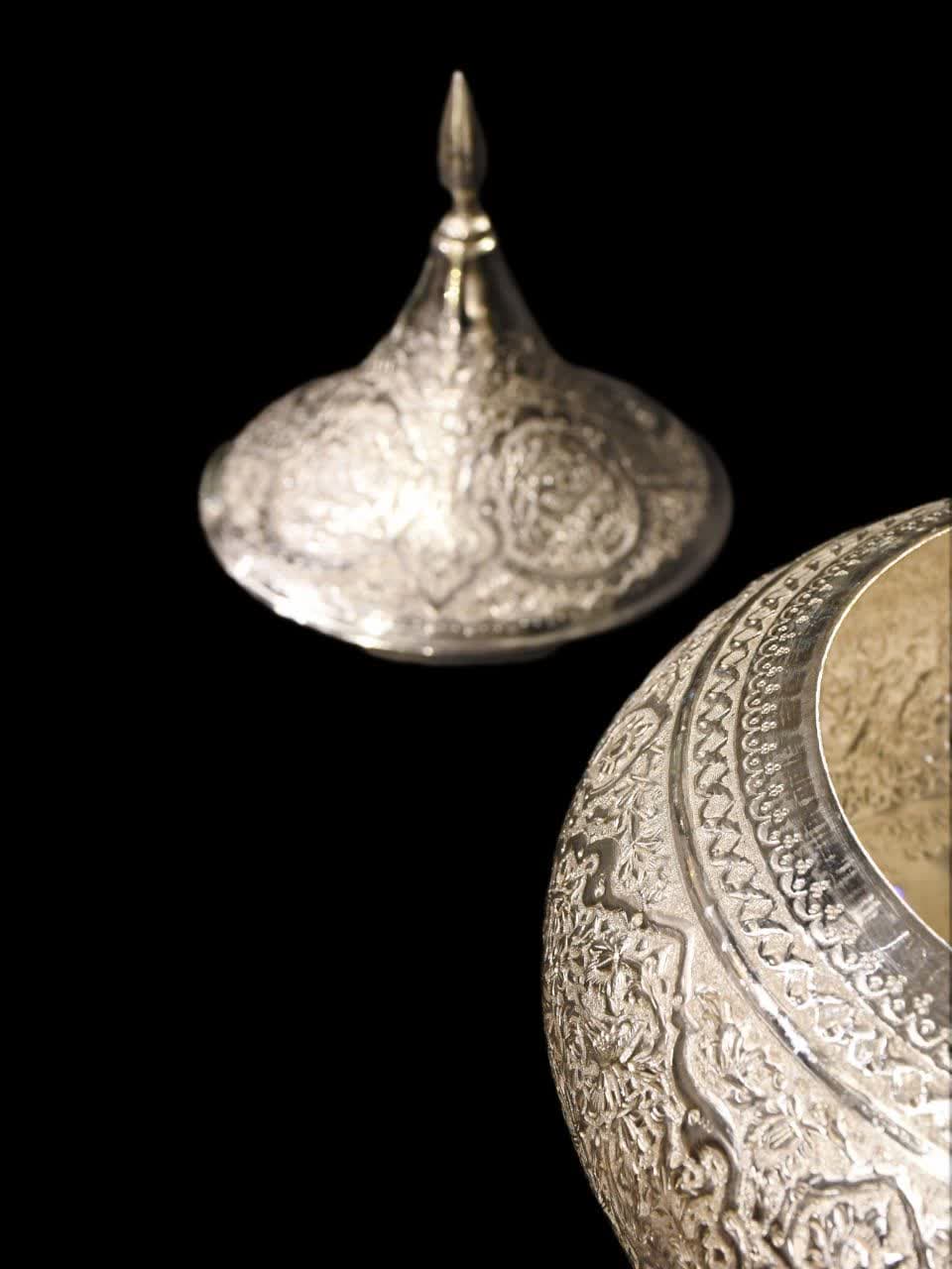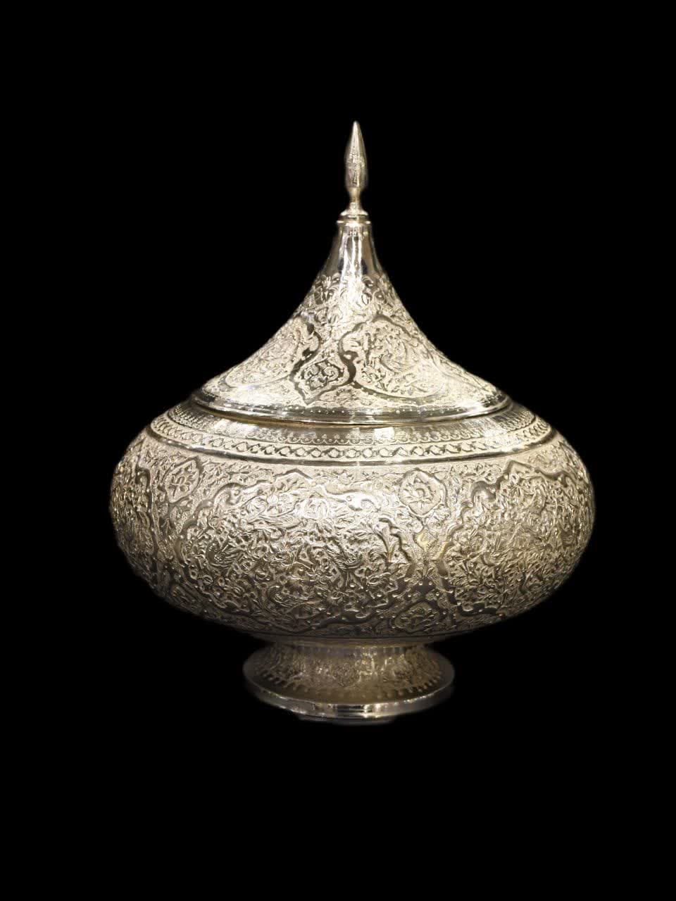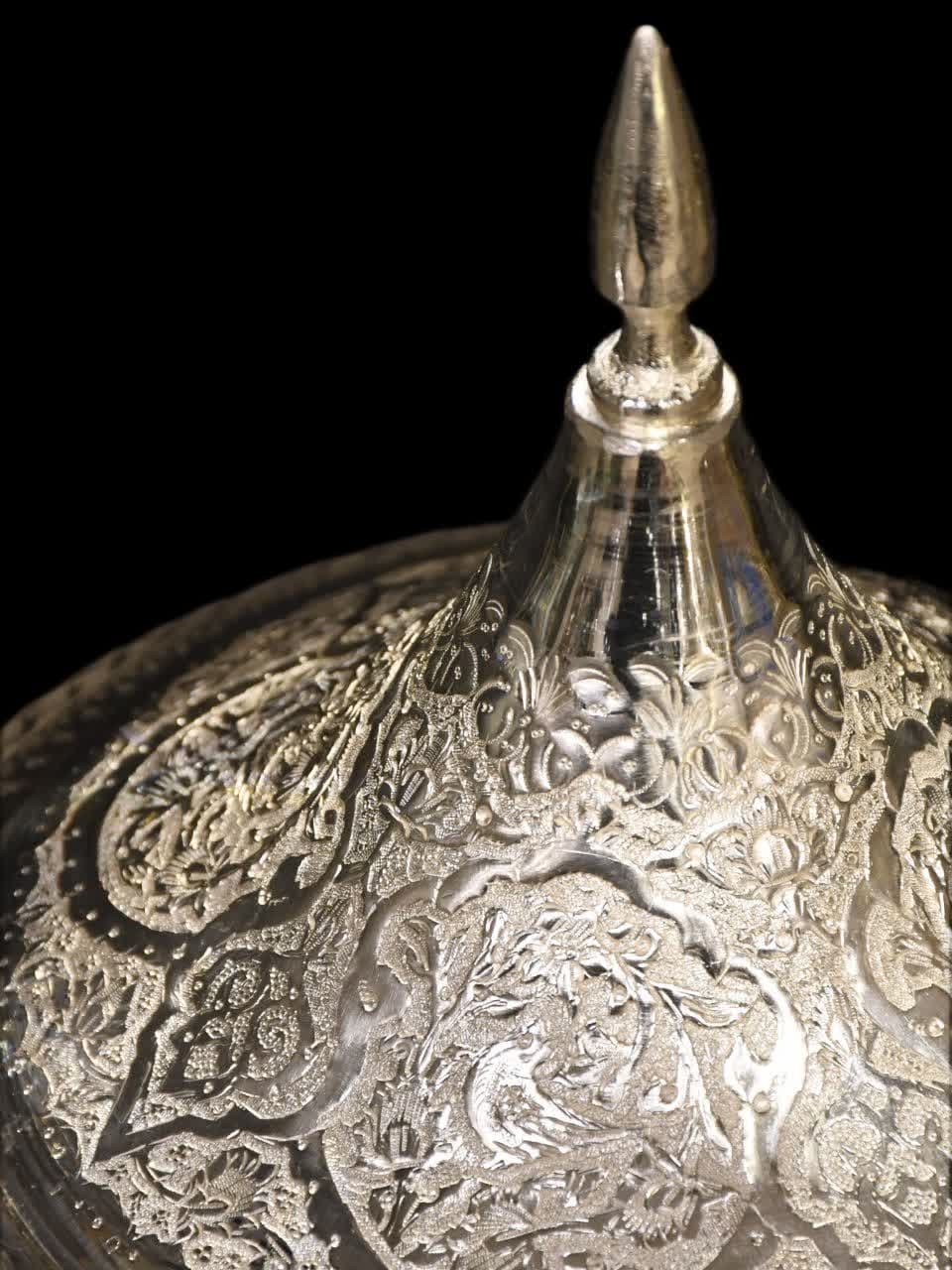 خانه ظروف پذیرایی گزخوری گز خوری نقره قلم گل و مرغ اصفهان 2312